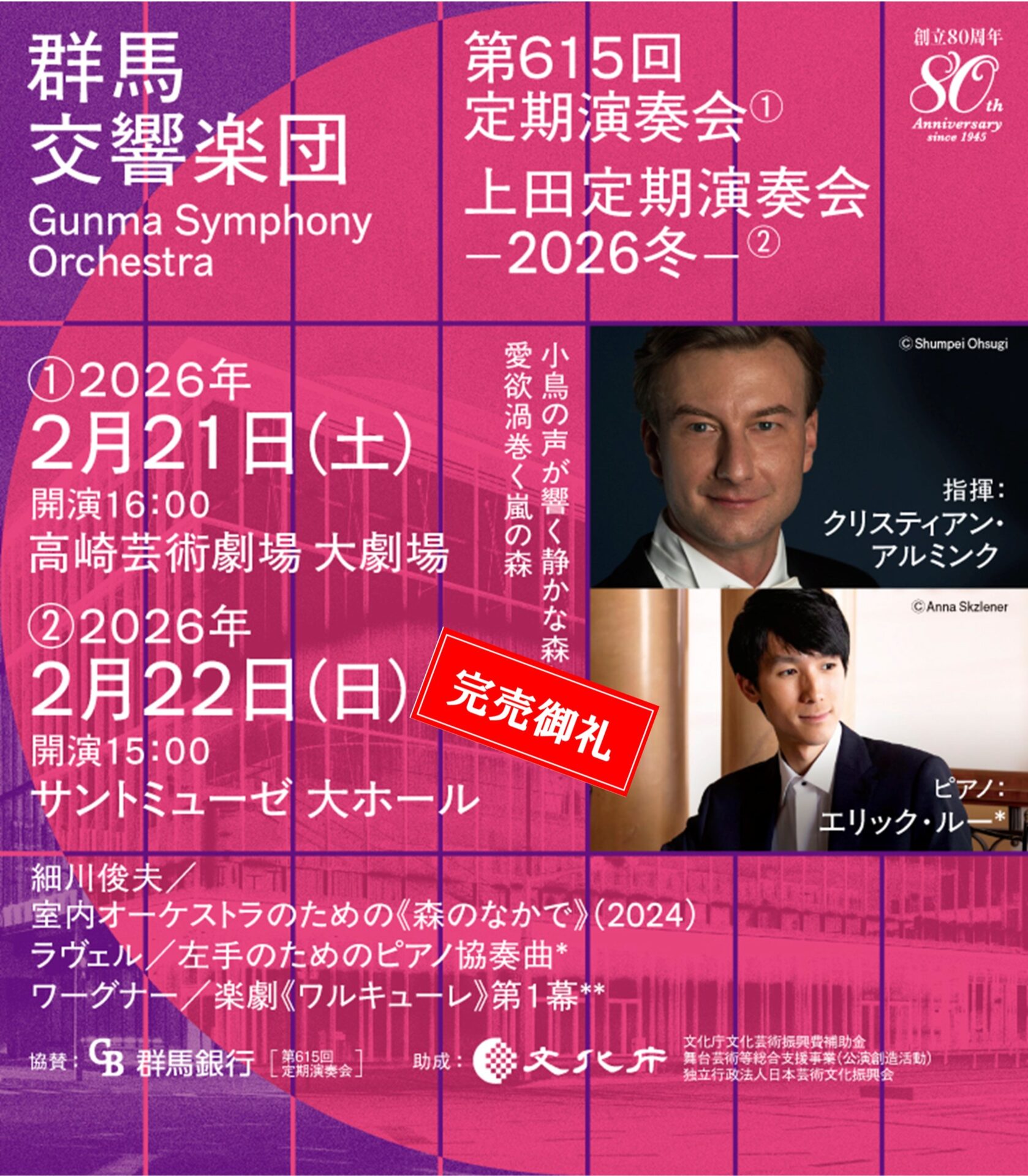 群馬交響楽団は、定期演奏会、移動音楽教室をはじめ幅広い音楽活動を展開し、群馬県の文化の象徴として県民から幅広く支持されており、2020年に創立75周年を迎えました。