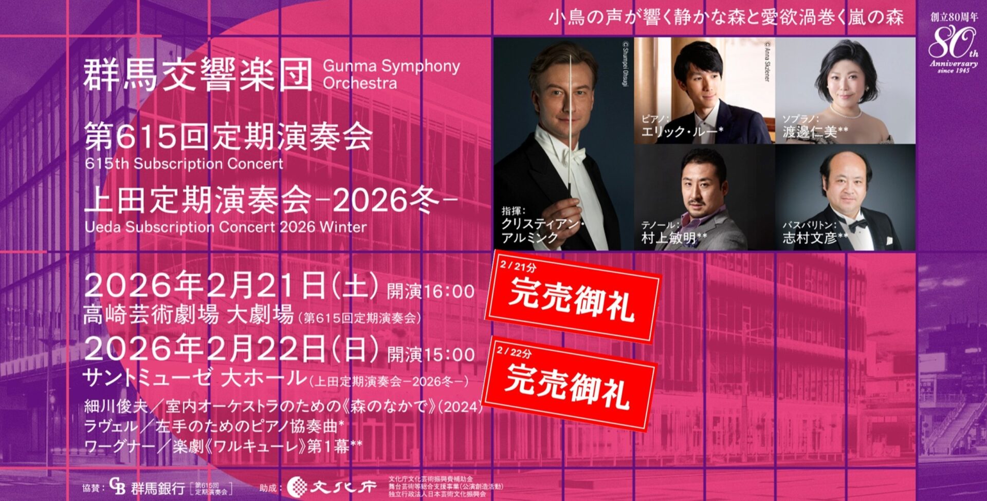 群馬交響楽団の演奏会チケットは、インターネット、お電話、プレイガイドにてご購入いただけます。