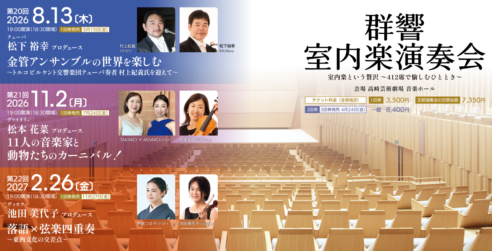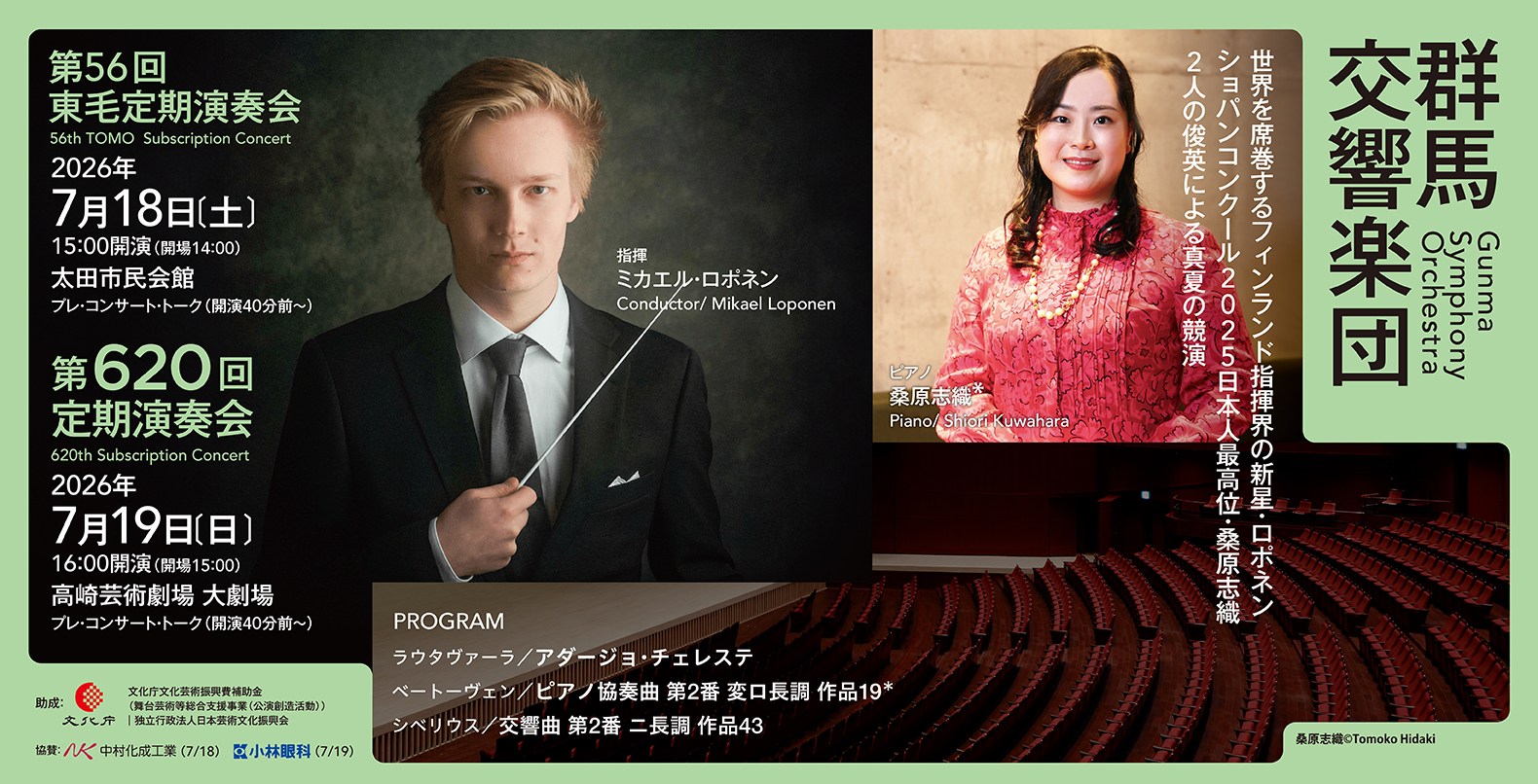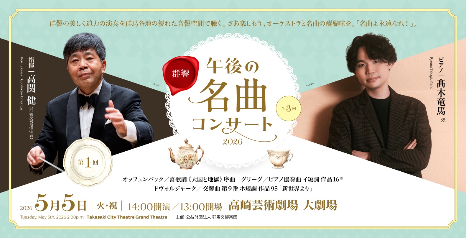 指揮/高関 健(群響名誉指揮者)、 ピアノ/高木竜馬 *
