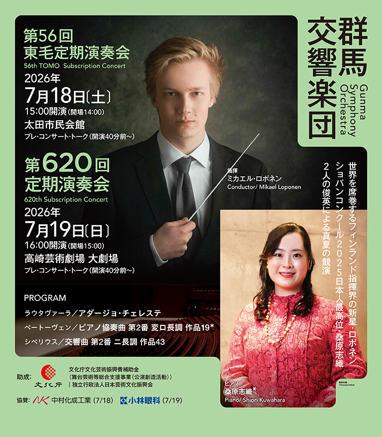 群馬交響楽団は、定期演奏会、移動音楽教室をはじめ幅広い音楽活動を展開し、群馬県の文化の象徴として県民から幅広く支持されており、2025年に創立80周年を迎えました。