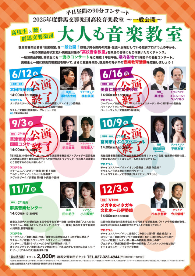 主催:公益財団法人群馬交響楽団、群馬県(高校音楽教室)