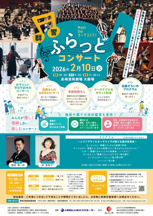 〒370-0841 高崎市栄町9-1 高崎芸術劇場3階 チケット専用電話 027-322-4944