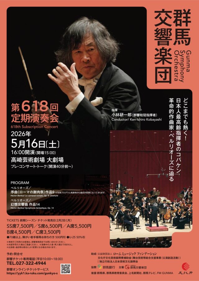 ※特別料金制度およびU-25割引制度のお取り扱いは、群響事務局、オンラインチケットサービスのみとなります。(他のプレイガイドではお取り扱いはございません)