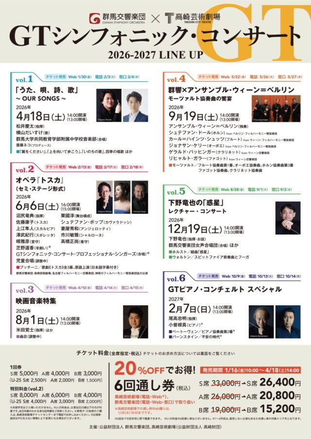 主催:公益財団法人群馬交響楽団、高崎芸術劇場(公益財団法人高崎財団)