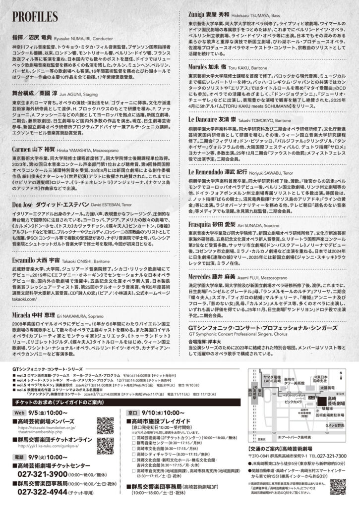 【演奏者変更のお知らせ】GTシンフォニック・コンサート vol.5 オペラ『カルメン』演奏会形式 演奏者変更(2026年2月1日)